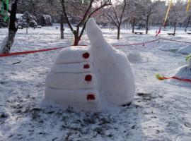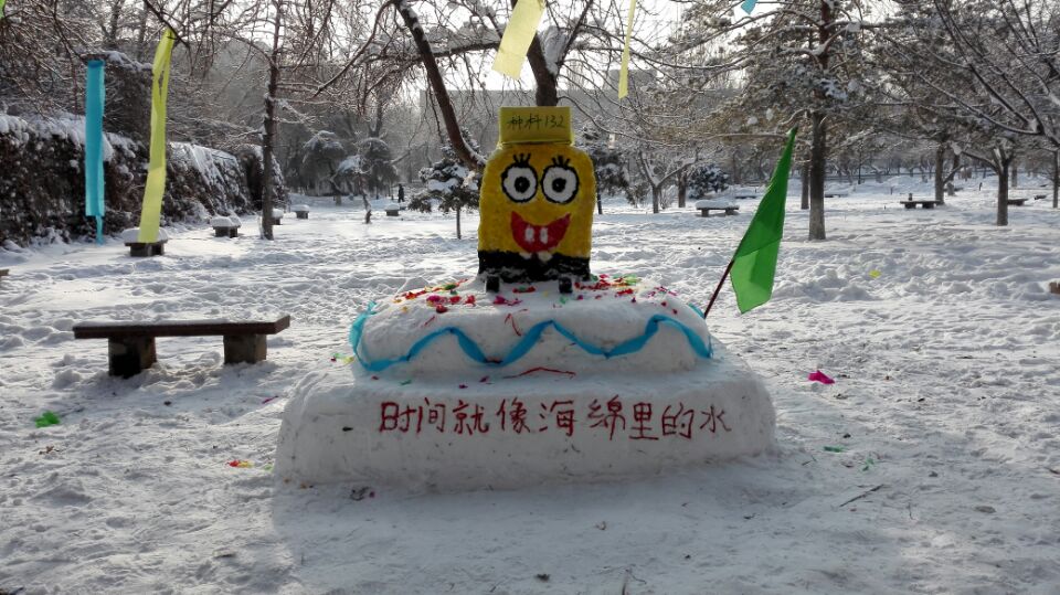 作品《爱心蛋糕》以“我为祖国许个愿望“为创意出发点,温馨的蛋糕造型让不少行人驻足许愿;作品《海绵宝宝》萌翻现场,加之“时间就像海绵里的水”的醒目标语,向同学们传递“一寸光阴,一寸金,时不我待”的信念;作品《大拇哥》高高翘起的拇指则向所有人发出“新疆亚克西,农大亚克西”的豪言壮语。总之,一件件作品都充满创意,将自信、乐观、创新诠释的淋漓尽致。路过的行人和大学生都兴致勃勃的拿出手机与这些可爱的“雪中精灵”合影留念。
