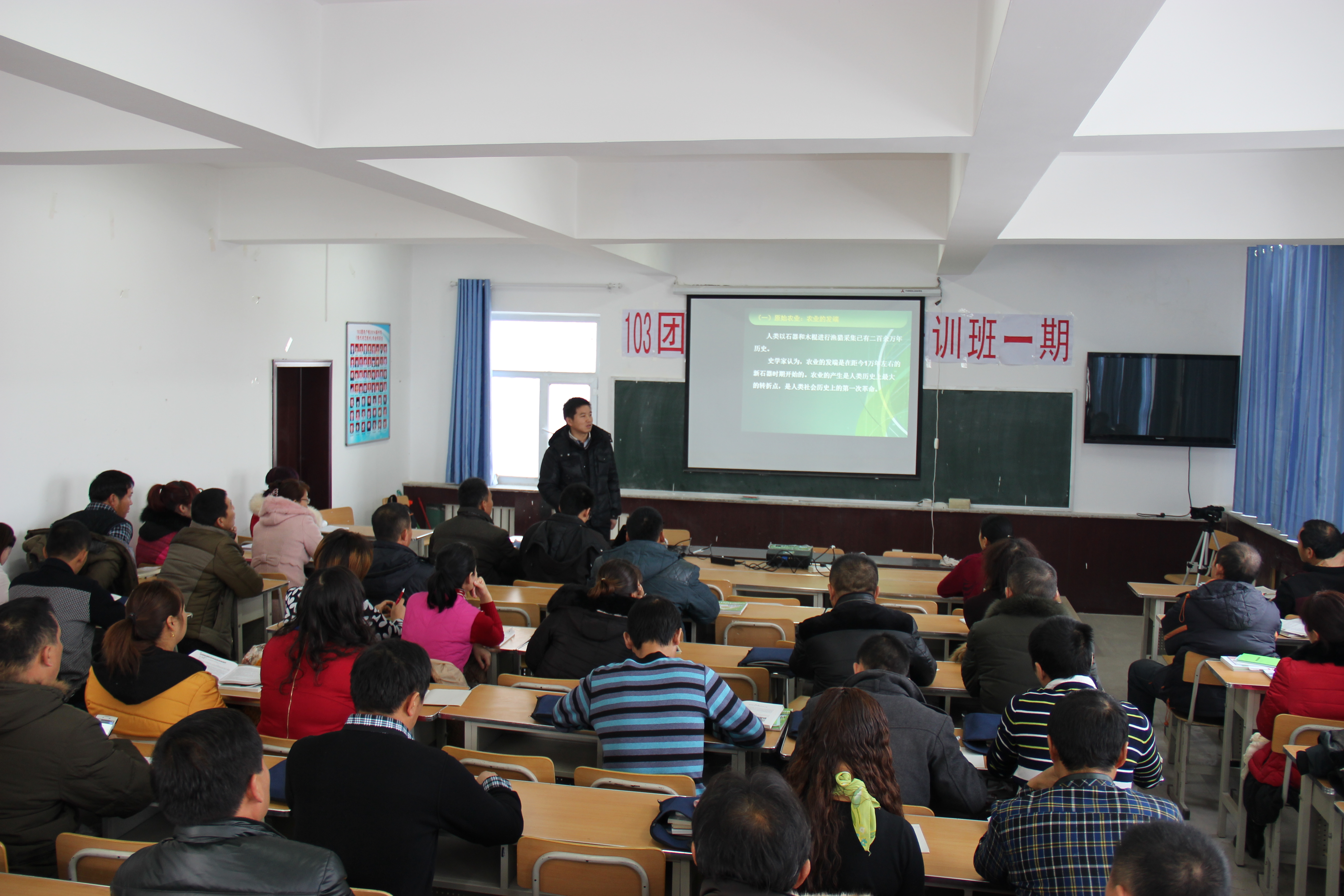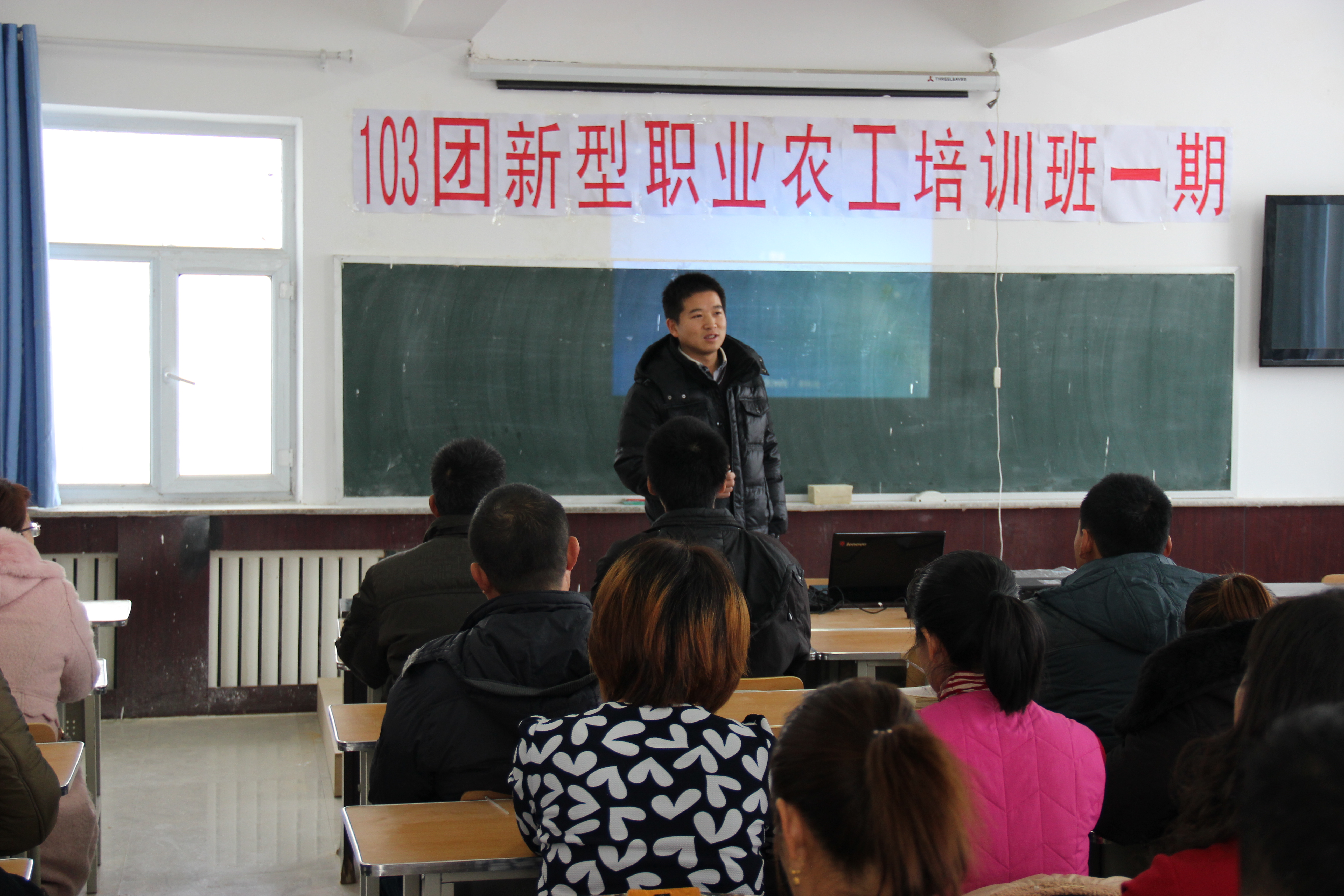赵强老师应六师103团农广校邀请,于2014年12月11日驱车前往103团进行以现代农业为主题的报告,本次报告系“新型职业农工教育”培训班的一项课程内容,班级成员均为团场农业技术人员和种植大户,总人数约80人。赵强老师围绕现代农业的特征、现代农业发展模式及有机农业等方面进行了讲解,授课效果良好,增强了学员对现代农业的认识,为他们利用现代化农业技术进行生产提供了参考。
