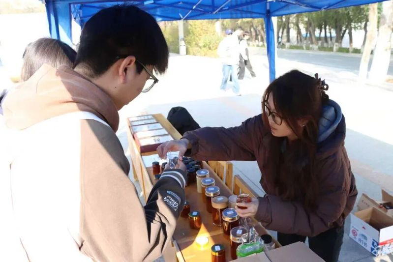 美食区的蜂蜜品尝点前排起小队,现冲的蜂蜜水甜进心里。有同学连喝两杯后立即打听:“这是哪个实验基地的成果?我想去参观学习!”