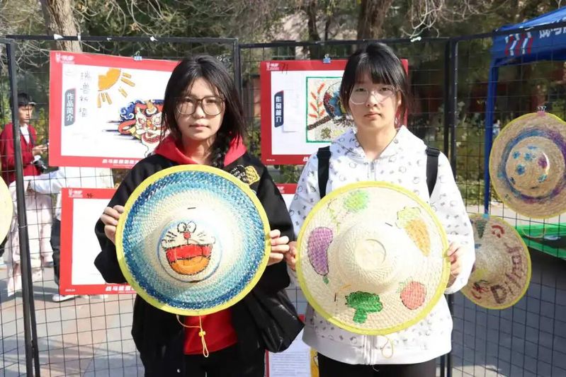 DIY区域始终人气爆棚,同学们在志愿者的引导下制作种子画、绘制草帽。